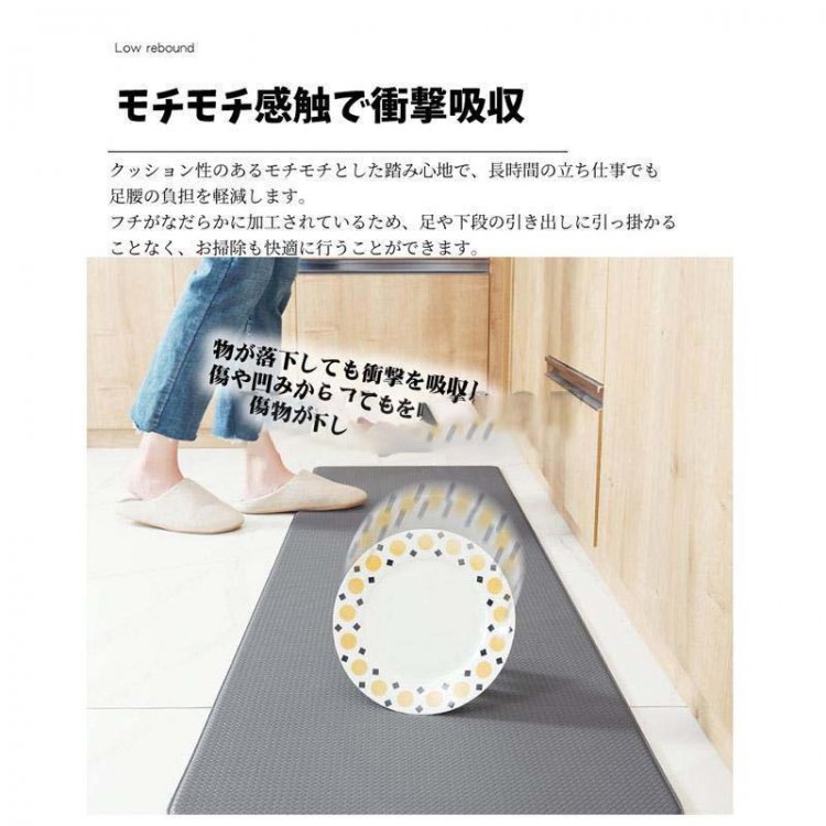◆モチモチとした踏み心地で、長時間の立ち仕事でも足腰の負担を軽減します。