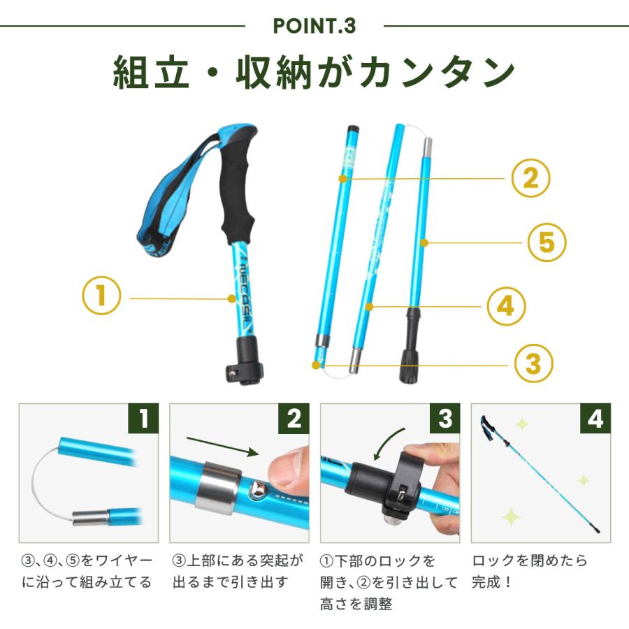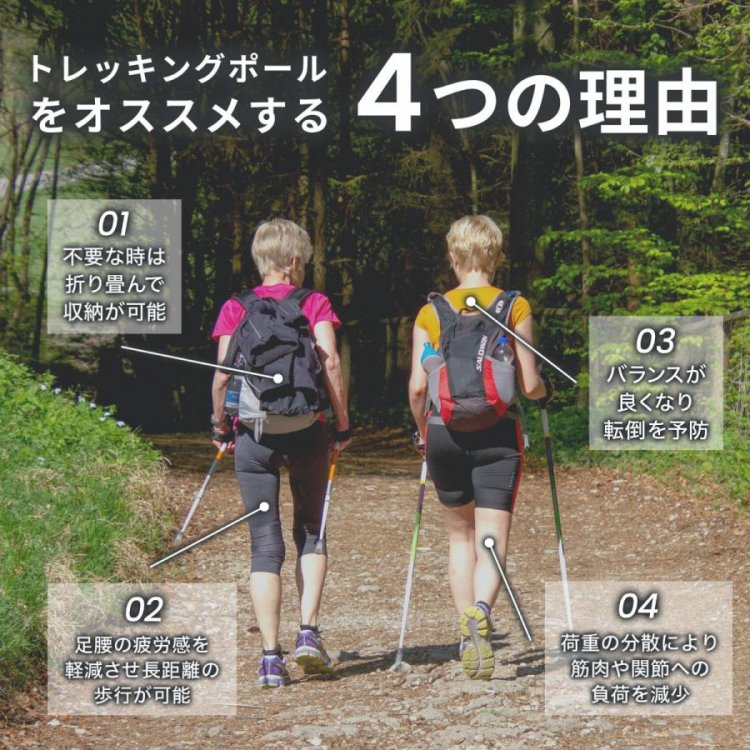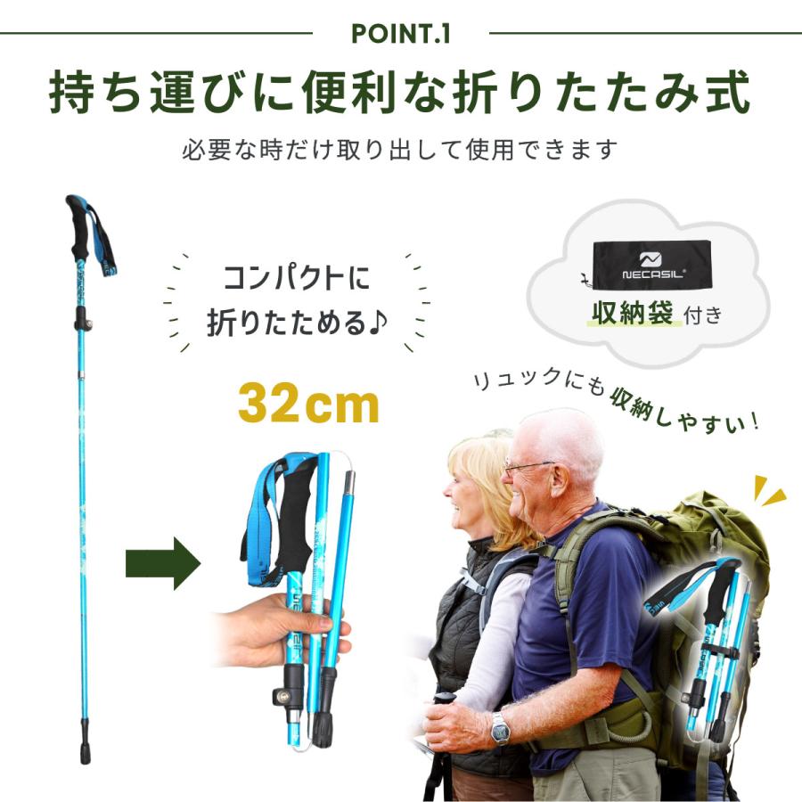トレッキングポール 折りたたみ コンパクト トレッキング 登山 杖 ウォーキング ストック ステッキ ポール 折り畳み アウトドア ハイキング 高強度 軽量 2本 セット 登山用