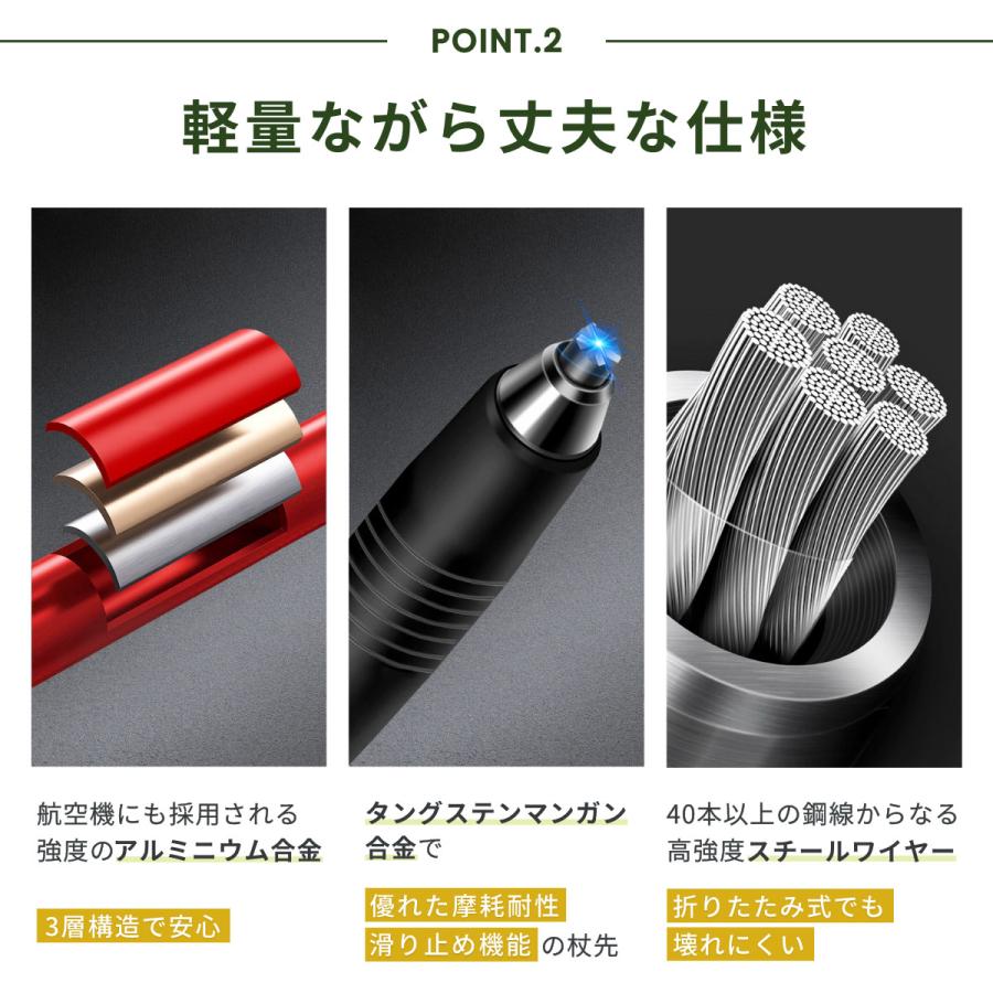 ?タングステンマンガン合金で優れた摩耗耐性?滑り止め機能の杖先