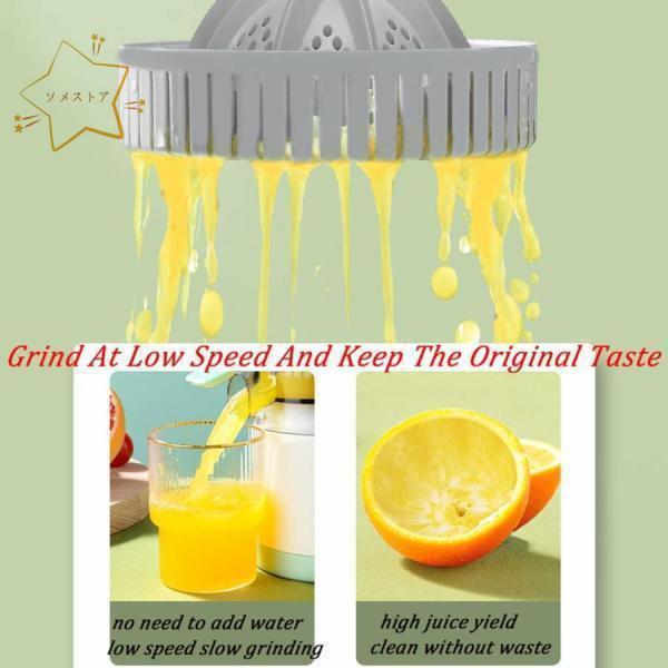 【軽量?ポータブル】電動ジューサースクイーザーはコンパクトで持ち運びも簡単なので、ご家庭でもピクニックにもお使いいただけます。電気柑橘類ジューサーはスペースを取りません。バッグに入れでも、全く邪魔しません!