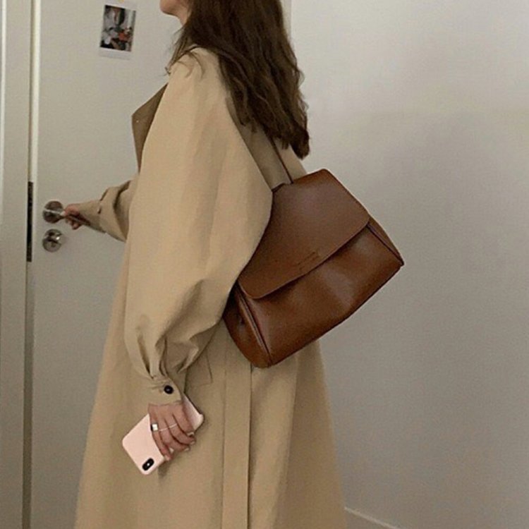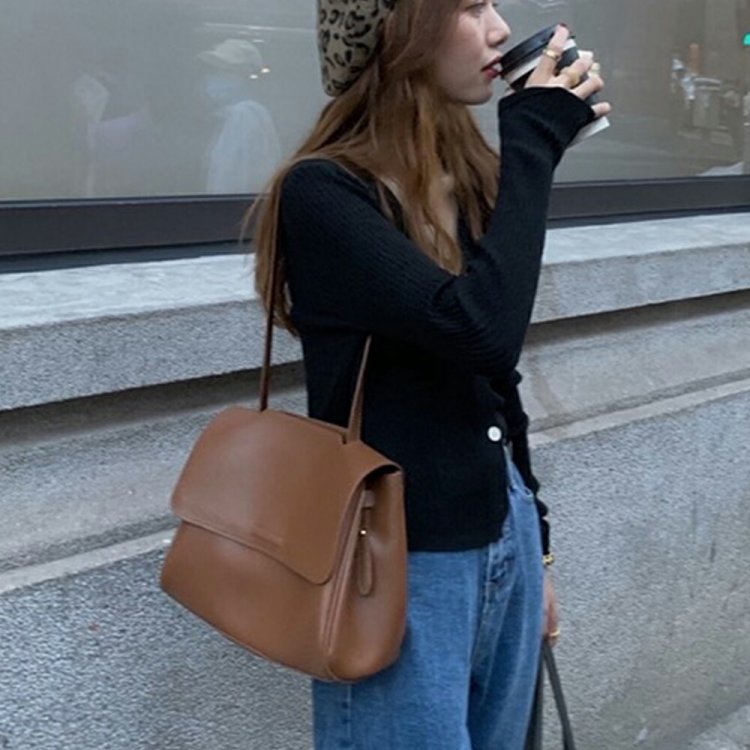 シボ感と膨らみのある上質な合皮を使用したショルダーバッグ