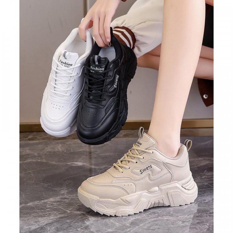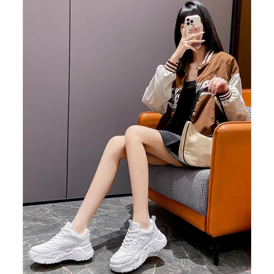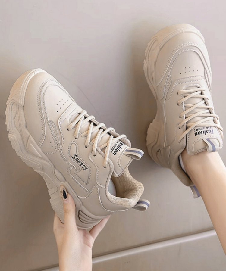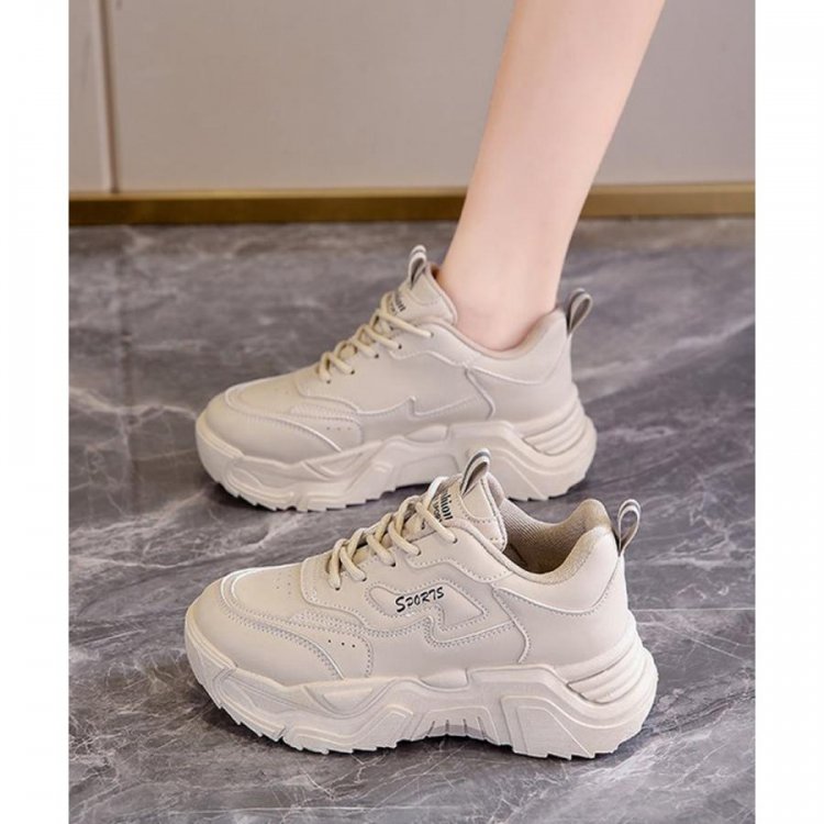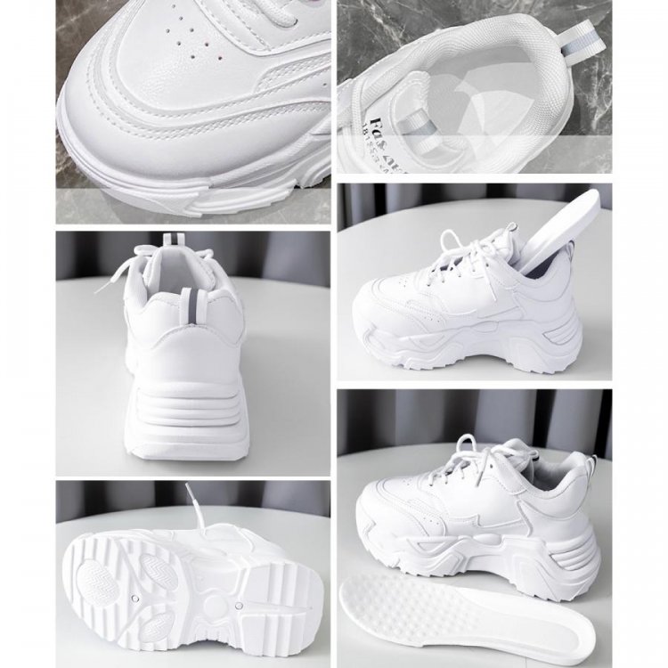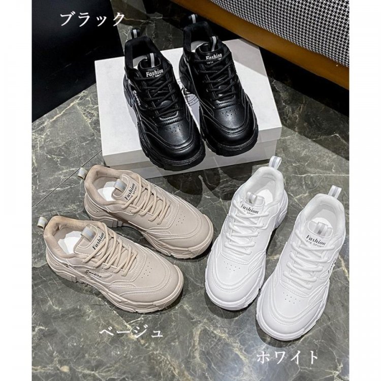 ボリュームスニーカー アウトドア 歩きやすいシューズ 通勤通学靴 履きやすい PUレザースニーカー カジュアルくつ 韓国